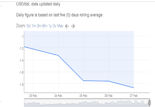 А сега вижте, каква е дневната разлика – и дисконта с който се търгува референтния за рафинерията в Бургас марка Уралс, – дисконтът е повече от 1,8 долара под цената на Брент, тоест е под 50 долара.